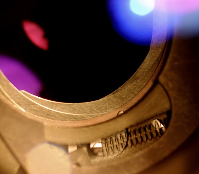 PS: Looking at your picture again I guess I see the round end of one aperture blade (light blue) in the 7.30 o'clock position